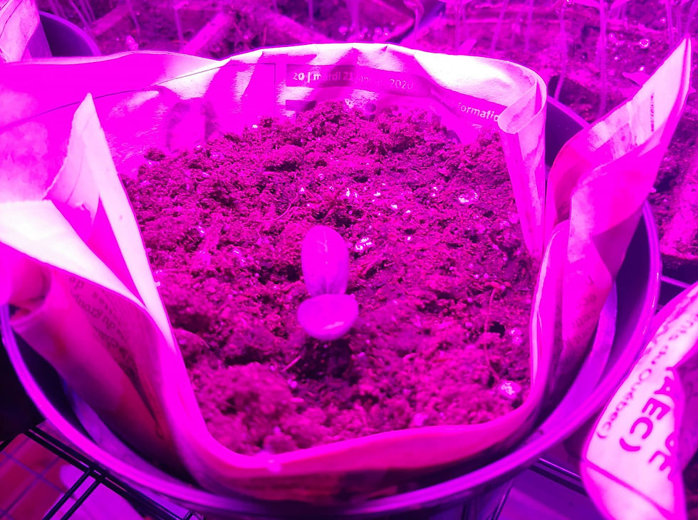 Les semis feront deux petites feuilles appelées « cotylédons » qui ne ressemblent pas aux vraies feuilles de la plante. Quand les semis auront deux "vraies" petites feuilles, il faudra procéder au repiquage. Je vous montrerai tout ça dans un prochain blog!
